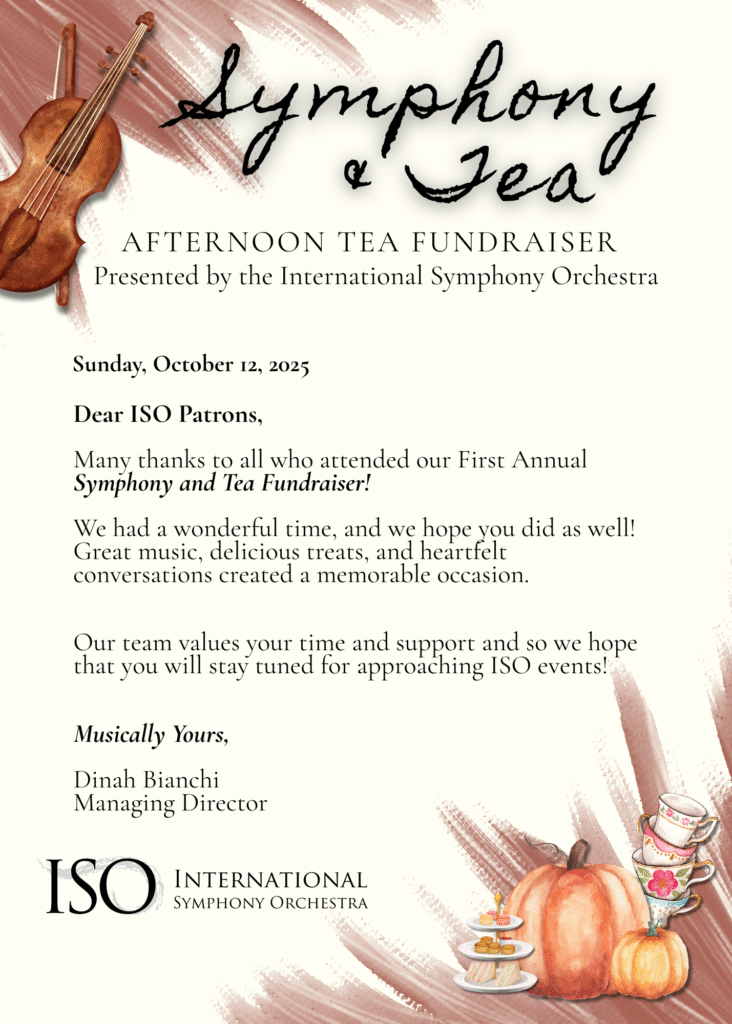 The International Symphony Orchestra is in its 68th year of bringing incredible musical performances and music education to our twin communities. Your ISO is dedicated to maintaining the vitality of the performing arts by continuing to provide these exceptional and memorable experiences. Our continuation is made possible through the generous support of our listeners, patrons, sponsors, and donors like you. YOU and your support are truly what makes our mission possible!