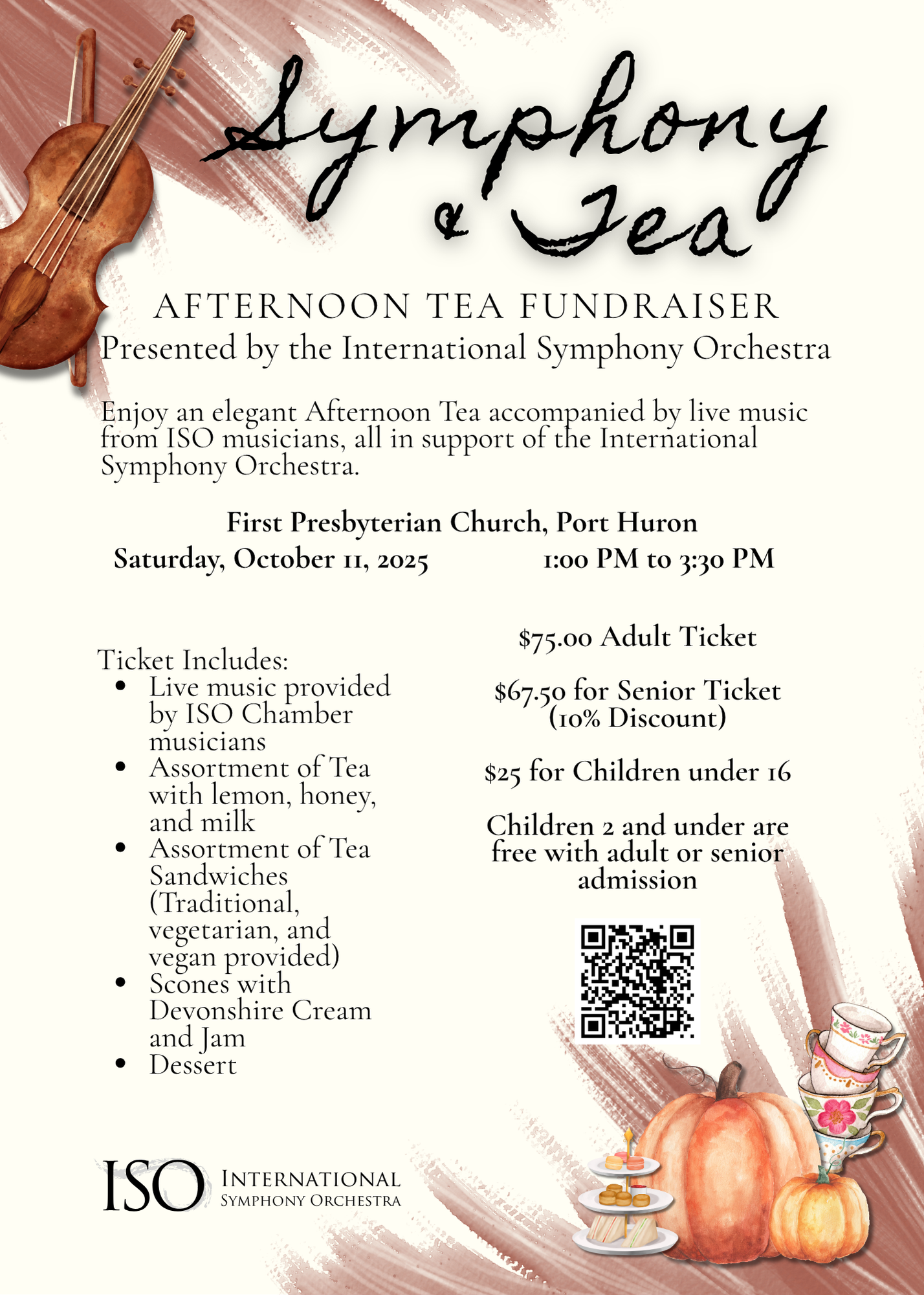 Join us for Symphony & Tea – a charming afternoon of live music, fine tea, and delectable treats in support of the International Symphony Orchestra!